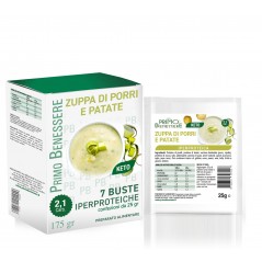Ideale per la tua dieta dimagrante, una zuppa proteica cremosa al gusto di porro e patate per la tua dieta iperproteica . Una ricetta perfetta ad alto contenuto proteico che fornisce 15 g di proteine per porzione.