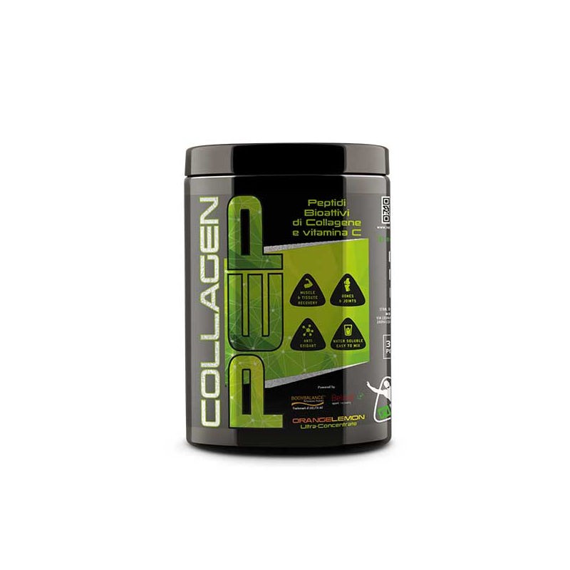 Il collagene viene anche chiamato la proteina del corpo: è presente nei muscoli, nei tendini, nel grasso e legamenti oltre che in moltissimi altri posti. L’assunzione di collagene è cruciale per garantire il benessere muscolare, la mobilità delle giunzioni, la stabilità delle ossa e la forza di legamenti e tendini. Collagen Pep (Peptidi Bioattivi di Collagene) è un integratore alimentare a base dell’innovativo brevetto Bodybalance® che, tramite un processo di ultrafiltrazione e idrolizzazione, consente l’ottenimento di peptidi bioattivi altamente puri da collagene. Il prodotto è arricchito dalla presenza del brevetto Belinal® un estratto secco titolato in polifenoli derivante dall’Abete bianco. Peptidi di Collagene Bioattivi per la ricostruzione muscolare Collagen Pep non utilizza un comune collagene marino o bovino ma dei Peptidi di Collagene Bioattivi (Bodybalance). Sono peptidi con un “Target” specifico. Questo è possibile tramite una specifica tecnologia di processo che controlla il processo di idrolisi del collagene e quindi genera peptidi con una funzione specifica nell’organismo. L’obiettivo del collagene Bodybalance® è: Stimolare le cellule alla sintesi di collagene. Fornitura di peptidi di amminoacidi (ricostruzione muscolare). Favorire la sintesi cellulare.