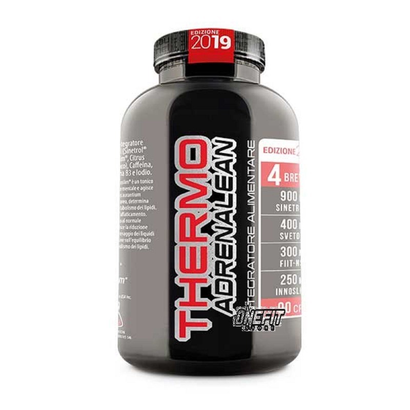 Gli integratori termogenici brucia grassi provocano una stimolazione del metabolismo basale. In questo modo, vengono aumentate la termogenesi e la capacità dell'organismo di bruciare più calorie anche a riposo. Oltre a 4 brevetti esclusivi il Thermo Adrenalean è ricco di Citrus Aurantium un vegetale contenente il principio attivo cin sin. La sine è un alcaloide con proprietà termogeniche ma privo di effetti collaterali sul sistema nervoso centrale.