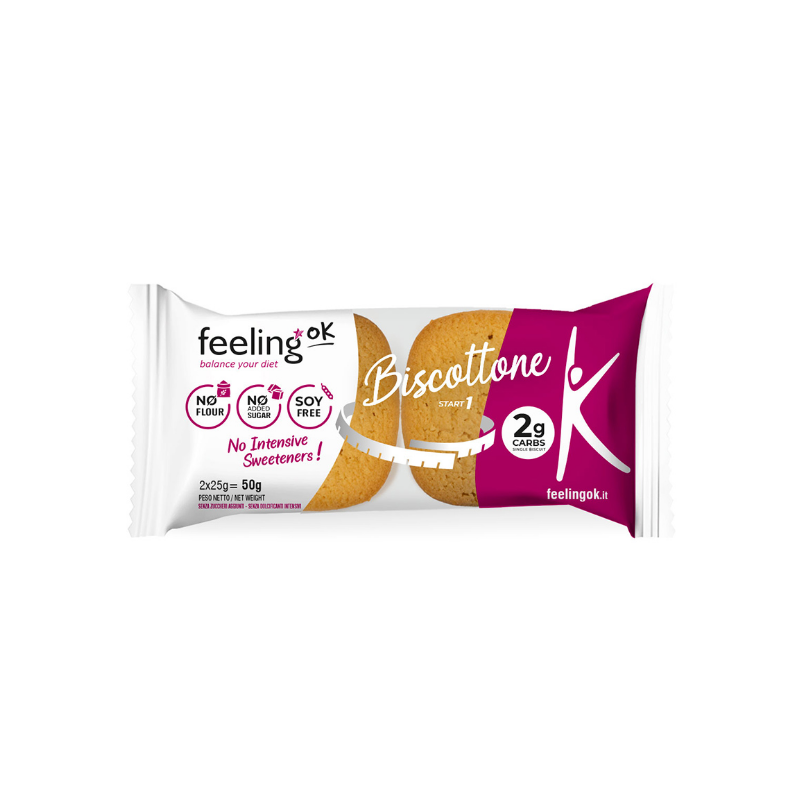Il Biscottone FeelingOk è un biscotto proteico , povero in zucchero, fabbricato seguendo la ricetta artigianale italiana e golosa! Un biscotto delizioso da portare con se ovunque per una pausa leggera, in caso di fame nervosa, essendo sempre attenti alla linea, durante la dieta iperproteica o anche per un'altra dieta. Il Biscottone conviene anche per l'allenamento sportivo