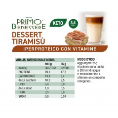 Ingredienti: Proteine del latte, yogurt magro in polvere, caffè solubile (4,5%), addensanti: gomma di guar e carragenine, aromi, olio vegetale, polvere di formaggio bianco (latte parzialmente scremato, lattosio e proteina del latte, fermenti lattici), sale, lattosio, antiagglomerante: carbonato di magnesio, vitamine (C, B3, E, B5, B6, B2, B1, A, B9, B8, B12), edulcoranti: aspartame e acesulfame di potassio, bacche di vaniglia svuotate in polvere, maltodestrina.