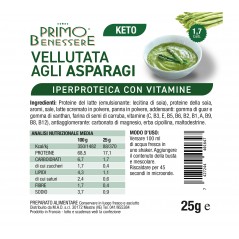 Ingredienti: proteine del latte (emulsionante: lecitina di soia), proteine della soia, (emulsionante:lecitina di soia),aromi(contiene:frumento,orzo)sale,latte scremato in polvere,panna in polvere,addensanti:gomme di guar e xantano,vitamine(C,B3,E,B5,B6,B2,B1,A,B9,B8,B12)maltodestrine,agente antiagglomerante:carbonato di magnesio,erba cipollina.Può contenere tracce di crostacei,uova,pesce,soia,frutta a guscio,sedano.